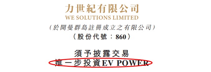 力世纪究竟能否投资者的期望呢?力世纪距今最近的一次布局,就是进一步增资EV Power,一间在香港及中国提供电动车充电解决方案及标准的公司。于2018年8月20日,力世纪(00860)全资附属Grand Destiny以总代价76.9万美元进一步收购230.25万股EV Power普通股,占EV Power已发行普通股本总额约1.77%。收购事项完成后,Grand Destiny持有EV Power已发行普通股本总额约6.95%。若计入Grand Destiny持有的8170万股EV Power优先股,其持有EV Power全部已发行股本合共约20.03%权益。