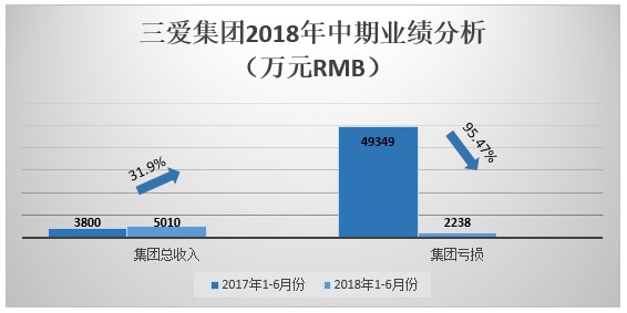 在財務上這類減值是一次性的,並不意味着公司資產的流失、損壞、報廢或者公司現金的虧損,是通常對未來不能產生效益的資產做處理的方式。經過減值處理後,公司每年應承擔的折舊費用也隨之減少,未來一旦新的業務收入增加,利潤將可以很好的反映出來,不會被老的資產所拖累。這個巨額減值的效果馬上在公布的2018年中期業績中得到驗證,截至2018年6月30日,集團實現銷售收入5010.4萬元,同比增加31.85%;公司股東應占虧損2238萬元,同比收窄95.47%。小幅度的營收增長,虧損大比例的收窄。