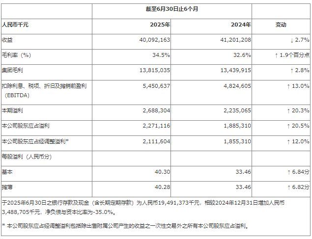 – 2025年上半年毛利率提升至34.5%,EBITDA同比增长13.0%